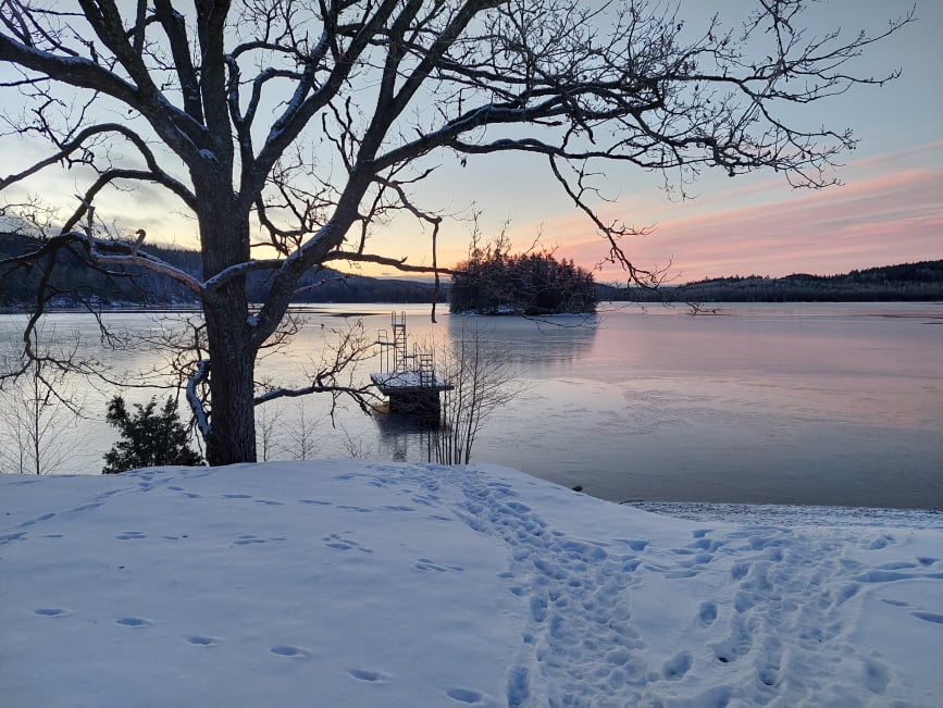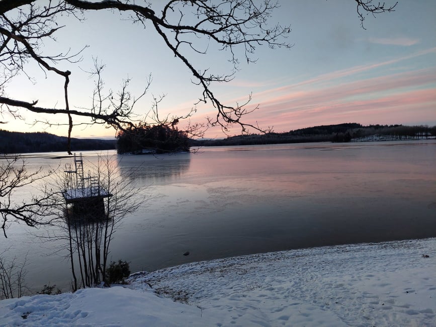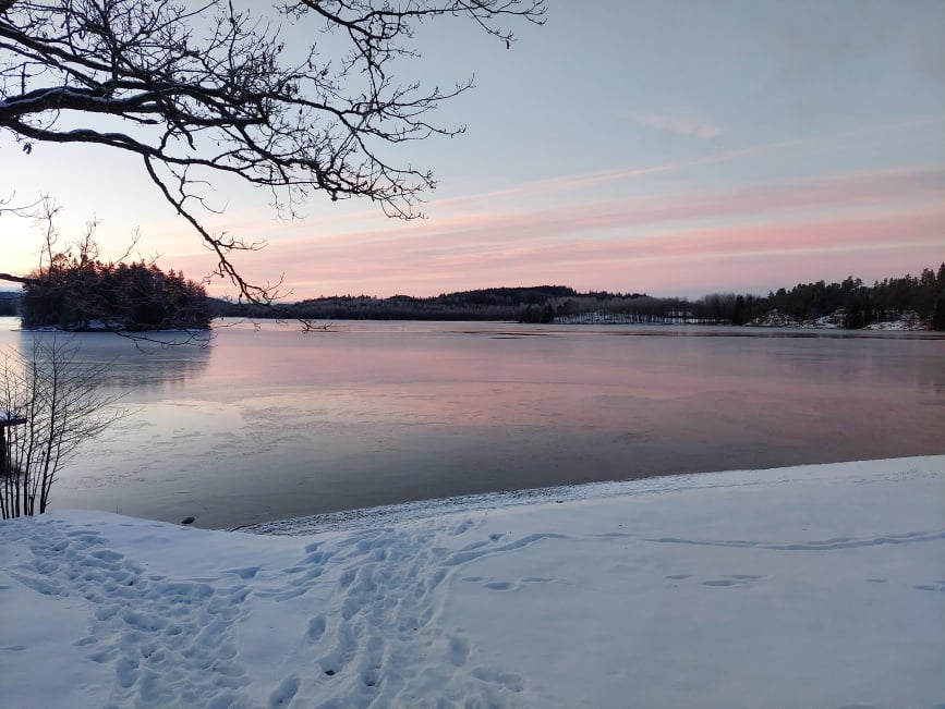 Bilen tog mig hela vägen till sjön och hela vägen fram till badstugan. Av med den varma gosiga kappan, av med stövlarna och på med badskor. Av med morgonrocken, omslöt mig med badhandduken. Med tankar om varför tar jag ens tar på mig badhandduken. Inte så att den värmer något särskilt. Den skylder min arma ännu varma kropp, just då.