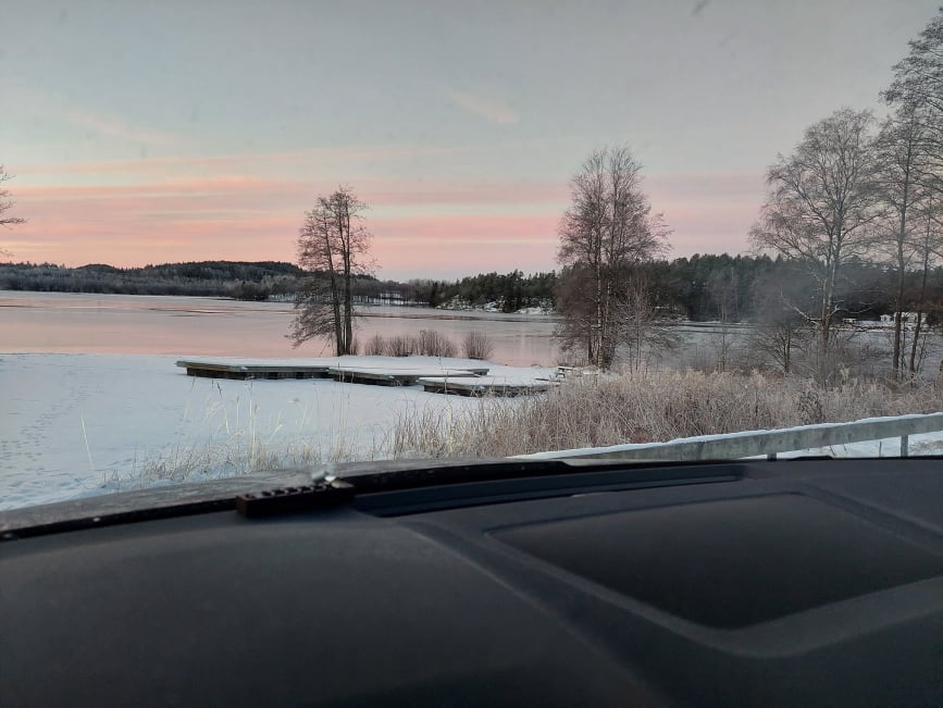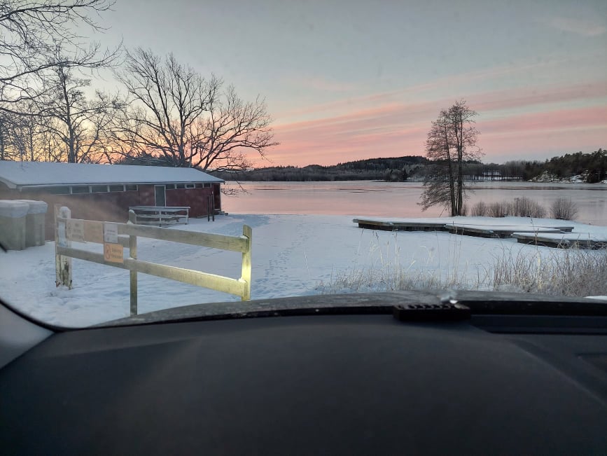 Sedan efter halv åtta, var det bara till att gö. GÖ med stora bokstäver. In i sovrummet av med nattlinne och på med badrocken. I med badskor och vantar. På med värmaren i bilen. Du är inte klok Carina!!! Nä jag är inte det men, det är så härligt att vara så där oklok som jag är i så fall. Galenpannan som jag är så satte jag mig i bilen tempen visade på – 15.5 grader.