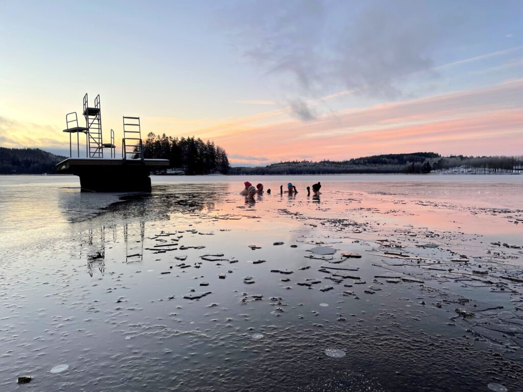 Efter som jag var redo för bad, fick jag en spade för att börja. Min mentor hade en stor pinne och göra små hål i isen. Sedan kom jag med spaden och gjorde större hål. Just under tiden jag hackade, kände jag inte av så mycket kyla. Den kom sedan, när det var dags för att doppa hela kroppen. Då trodde jag ett litet tag att jag inte skulle kunna doppa mig. Men då kom badsystrarnas hjälp, till hands. Helt plötsligt var jag där i vattnet, med vatten till nacken. Ett kort dopp, mina fötter var stelfrusna redan innan doppet. Där av det korta doppet i vattnet. Efter det korta doppet var det upp för backen, in i badstugan och försöka mig på att få av badskor och på med varma strumpor. Riktigt svårt med frusna fingrar. Men Jag gjorde det, jag är inte klok men jag gjorde det på riktigt.