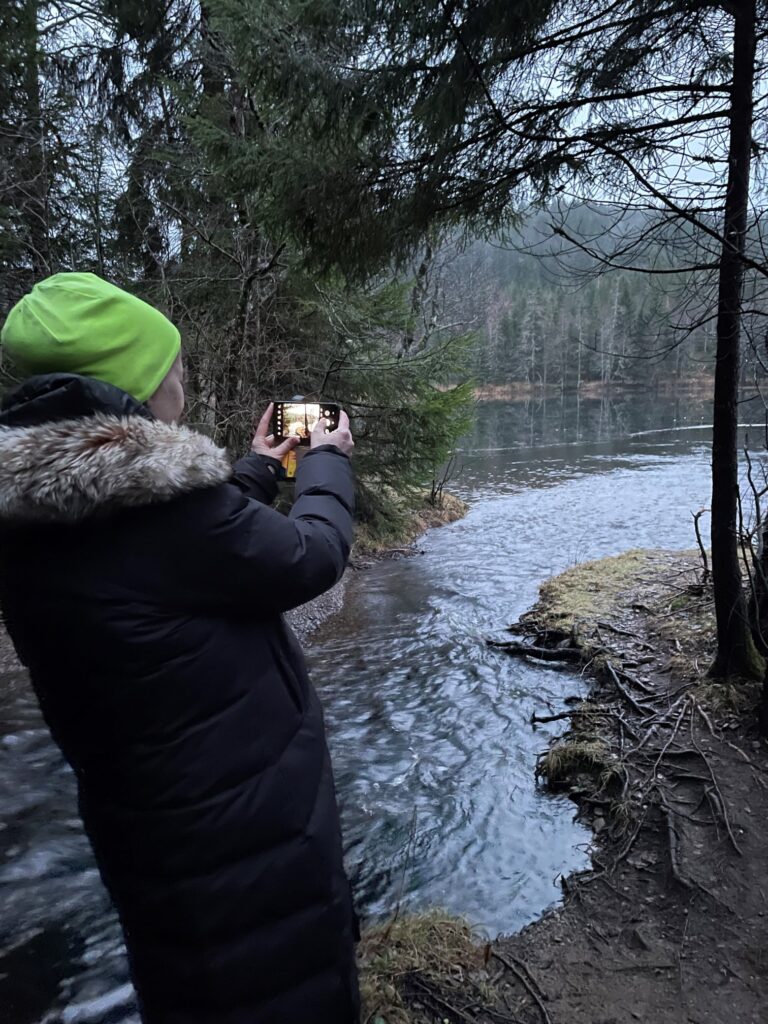Det snattras och skrattas där i skogsgläntan. Några av oss tar kort, när vi är klara för att doppa våra kroppar i vattnet, så är det stegen ut till den lilla naturtrappan och ut i vattnet.