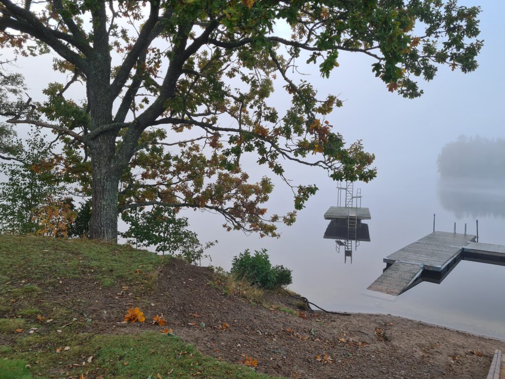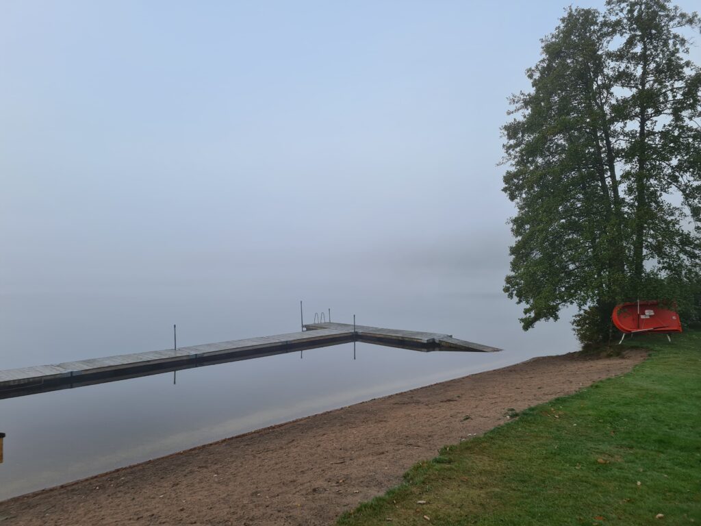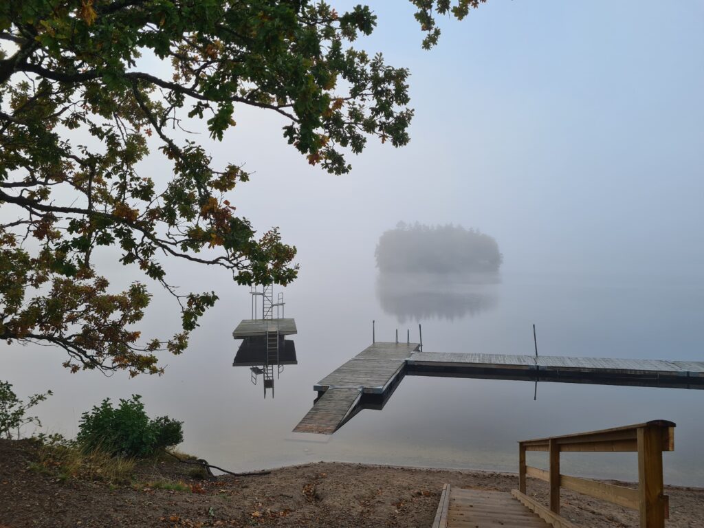 Idag vart jag tvungen att lämna katten en stund för att åka till badet. Innan jag åkte så jamade han. Mitt hjärta gjorde ont när jag stängde dörren. Men jag ville så gärna bada. 3 grader ute och dimma. 12,3 grader i vattnet. simmade 50 meter och låg och flöt en stund. Njöt av kylan och den magiska dimman. En härlig morgon, där glädje besked om att katten äntligen hade ätit, och där jag fick till det där med badet.