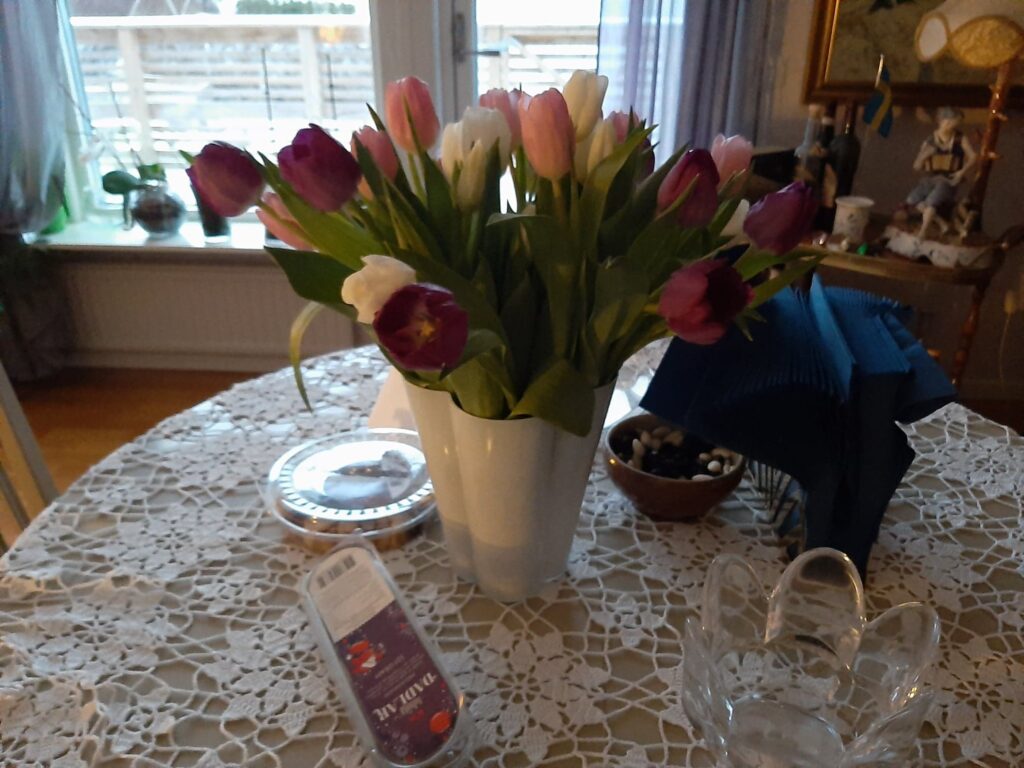 Min födelsedag blev till att jobba, till och med jobba jour. Jag bjöd Ungdomarna på tårta. Ungdomarna tog i för kung och fosterland för att sjunga till mig. Från jobbet fick jag fina tulpaner, av mina arbetskamrater. Just det där med tulpaner är Januari grej för mig. Det är så det blir försmak av det som komma skall.