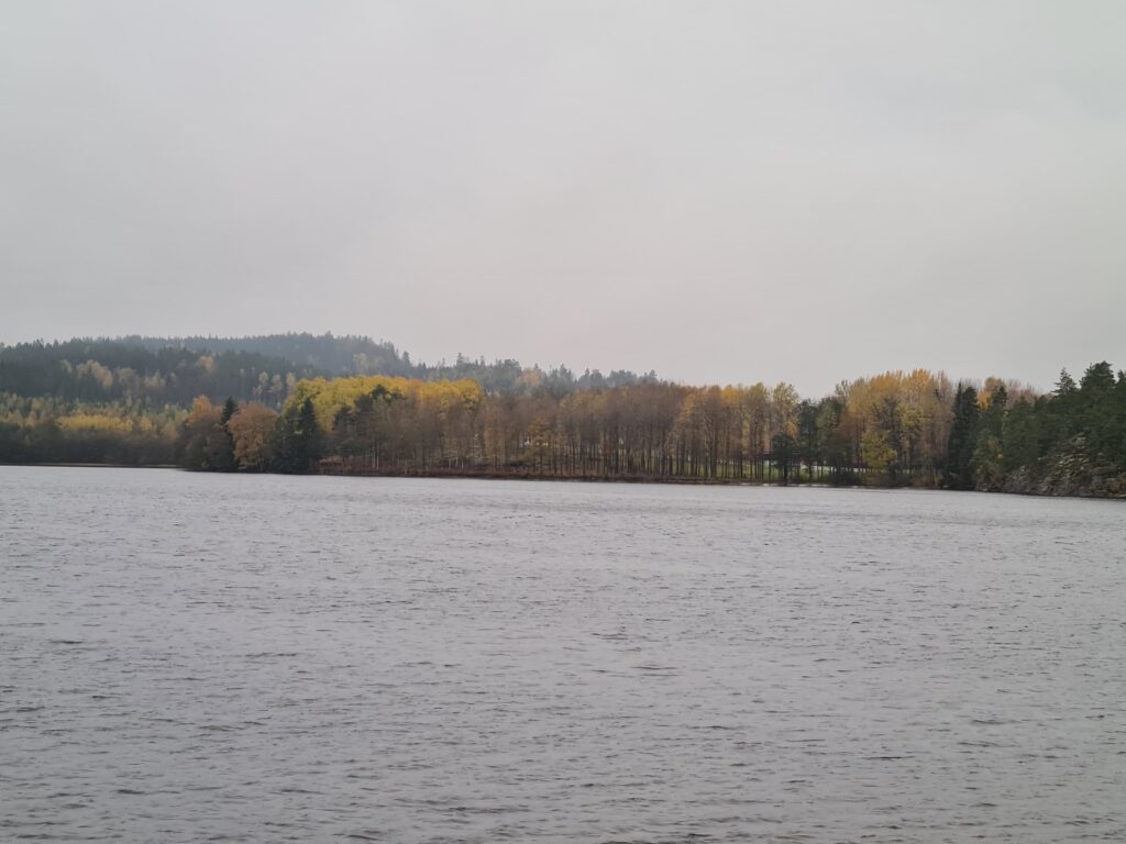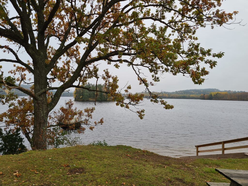 Skogen är så vacker nu när alla löven skiftar i alla olika nyanser av gult till brunt. De gråmulna vädret gjorde att det fick bli badstugan för mig idag. Var det sista gången igår att sitta ute för i år? Nej det kan allt bli fina dagar ännu. Det lär ju bli en del badande vid skogsjön när isen lägger sig. Då byter man om under granarna i skogen och det är ju ute. Fast det är inget jag ser framemot. Jag gillar sjön vi badar i just nu.