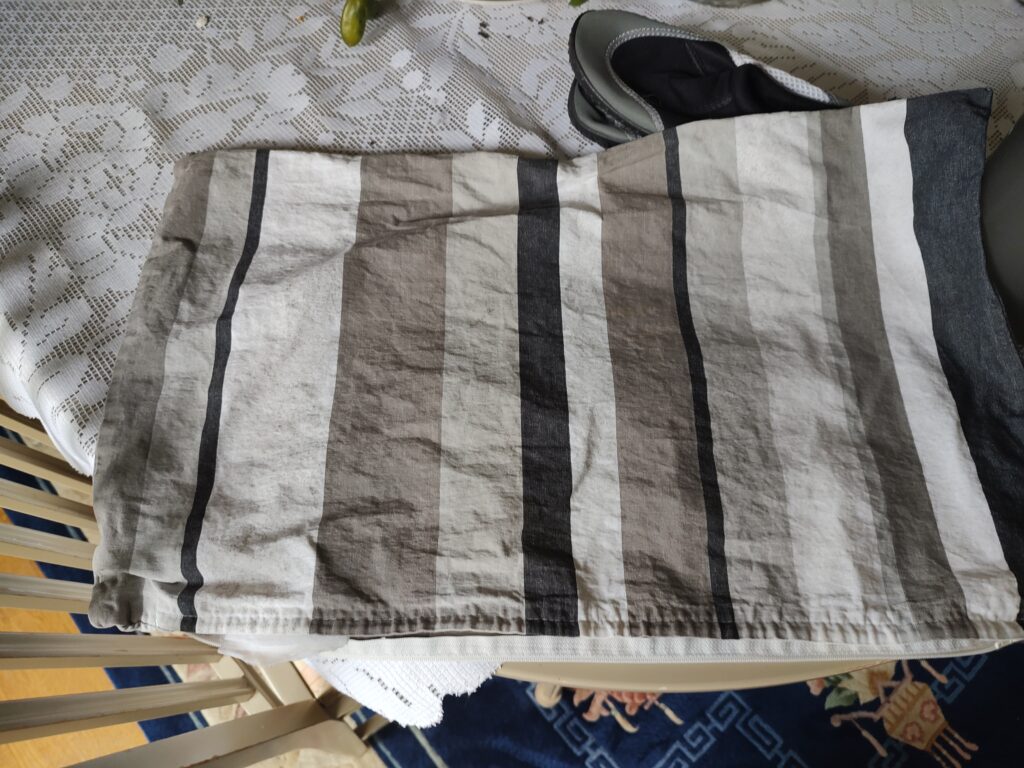 Medan de är på kalaset tänker jag ägna mig åt återbruk, en modern och hållbar aktivitet som jag har börjat uppskatta allt mer. Två av våra kuddar på altanen hade blivit solkiga efter att ha legat ute i alla väder. Istället för att köpa nya kuddar bestämde jag mig för att ge dem nytt liv.