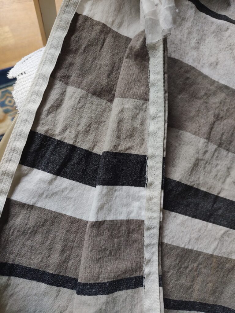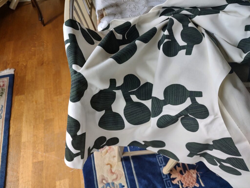 Jag gick in i strykrummet där jag förvarar massor av tyger och hittade en bit tyg som legat och väntat på att användas. Det ska nu bli de gamla kuddarnas nya kuddöverdrag. Dessutom ska jag återbruka dragkedjorna från de gamla fodralen, som fortfarande är i bra skick. Tyget kanske inte är det snyggaste, men det är definitivt ett steg upp från hur kuddarna såg ut tidigare, och dessutom har det ett roligt mönster.