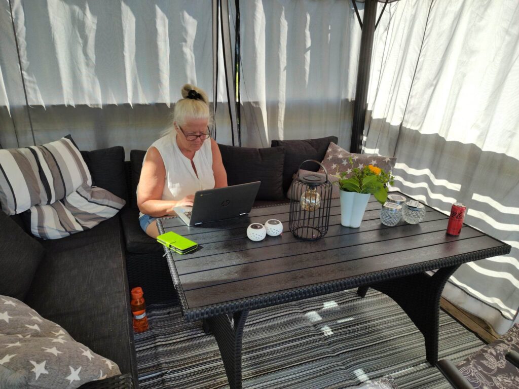 Igår var det en dag där vi åkte till Lidköping för att inhandla en ny matta som vi ska ha utanför husbilen. Den andra lämnade vi vid soporna i Norge. Någon annan kanske ville ha den så vi ställde den på ett bra ställe. Nu har vi köpt en ny. Vi köpte även nya tallrikar de vi hade var så tunga och klumpiga. Snygga men klumpiga. På vägen hem träffade jag på en kollega som var ute och åkte. Vi passade även på att åka och handla mat. Ett litet stopp vid solariet blev det där maken satt i bilen och väntade den där kvarten jag solade.