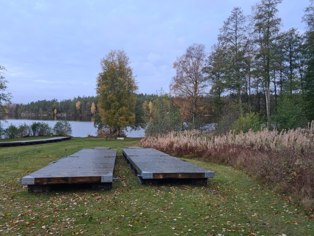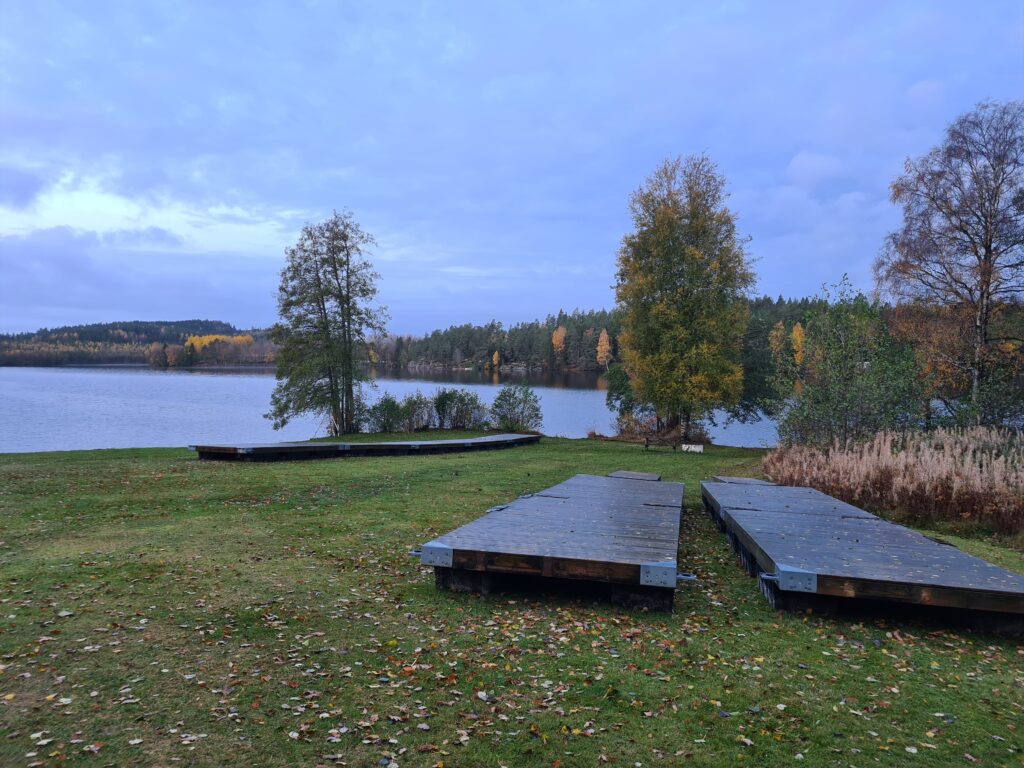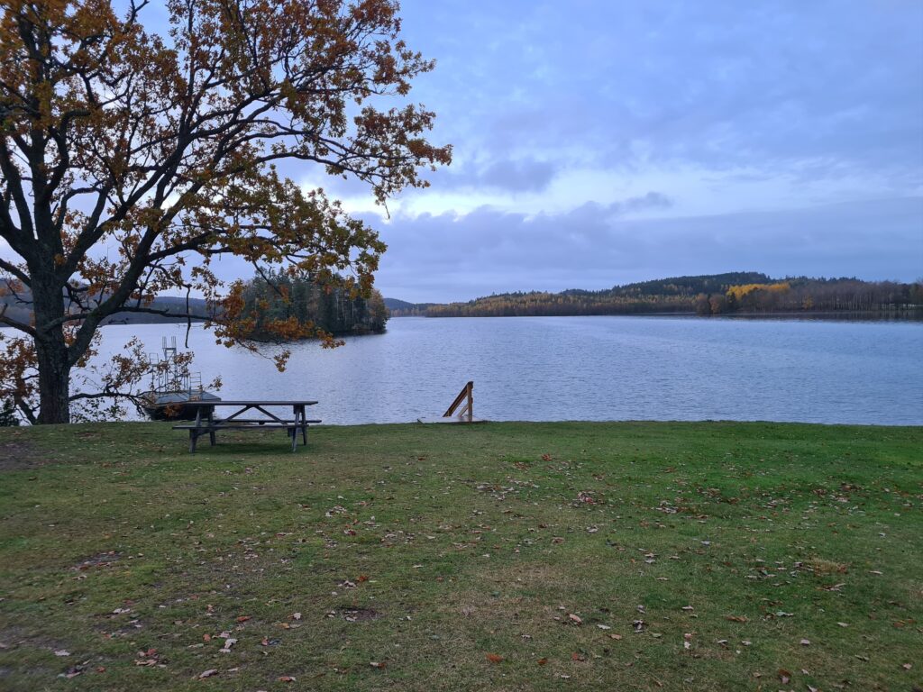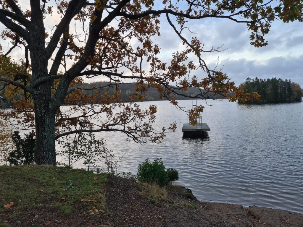 Bad idag? Yes, vet inte hur många grader det var men kallt va det kanske runt 10. Sjön var stilla och färgerna på träden otroligt vackra. Gult i alla nyanser av gult till brunt. Många badsystrar var det och idag blev det bad under tystnad. Eftersom det inte regnade ute, valde jag att byta om vid bänken utanför badstugan. Eftersom jag inte badat på några dagar kändes det extra kyligt, både då jag tog av morgonrocken och när jag tog stegen ut i sjön. Kallt jo riktigt kallt. Men så härligt. 4,35 minuter badade jag och pulsen var på 90. Kroppen har vant sig vid att jag badar. Pulsen rusar inte upp som den gjorde i början. Nu när jag inte badar så länge har jag inte så svårt att få upp värmen i kroppen igen.