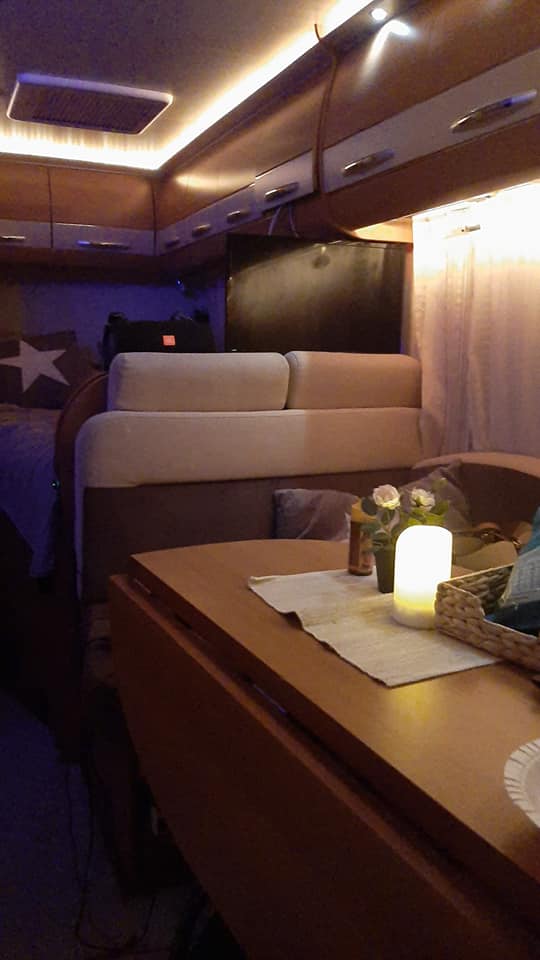 Oj, det flyttar in lite saknad, känner jag. Det ska det inte göra. Vi har ju LVL^ bilen. Den är har ju allt det där, vi hade tankar om och önskade, till och med ugn. Det hade jag inte en tanke på att jag behövde. Men har redan provat den, är helnöjd.