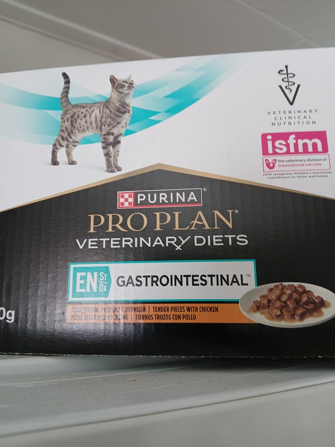 Nu? En och en halv påse mjuk-mat plus ett noggrant utvalt torrfoder. Det känns bra att ge honom det bästa, och även om maten är dyr så är det värt varje krona när vi ser hur han mår bättre.