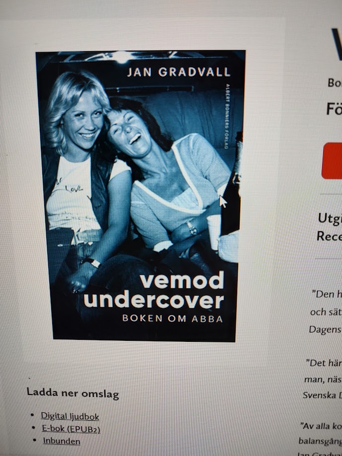 Kom mig ner till källaren där energin är låg, och jag har till och med legat i sängen för att bli varm. Men med en rejäl förkylning ska man inte ligga still, utan röra på sig. Så det blev att gå upp, ta en varm dusch och sedan klä på mig varma kläder. Nu sitter jag här och låter fingrarna trycka ner tangenter. Fick tips igår om en bok om ABBA med titeln ”Vemod Undercover”, och nu har jag den i öronen. Författaren heter Jan Gradvall.