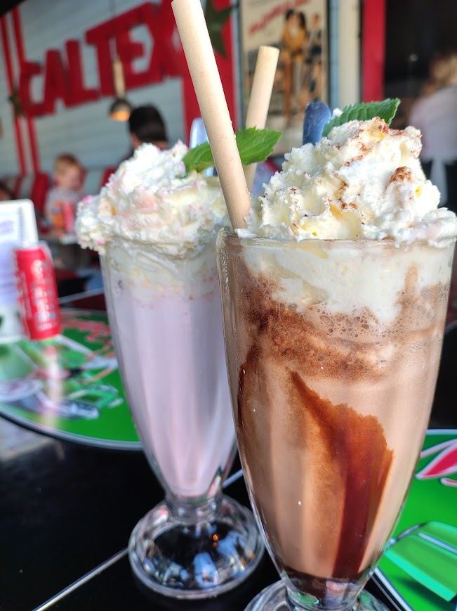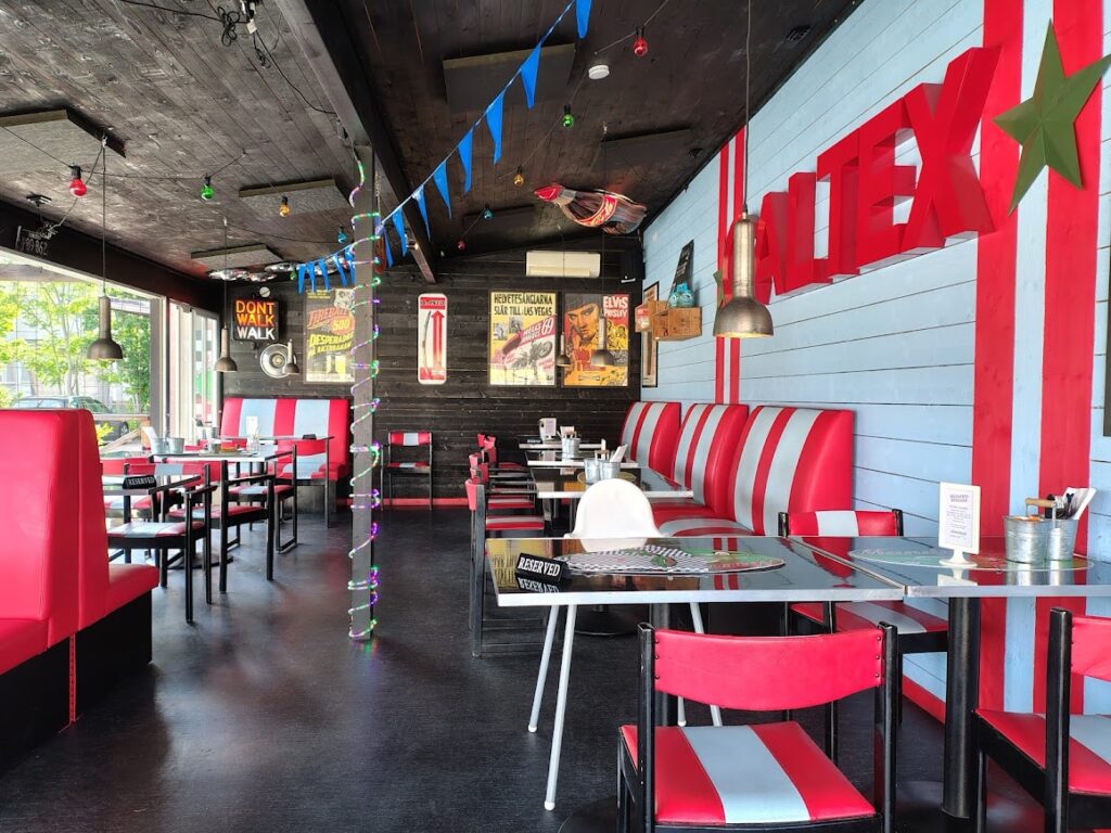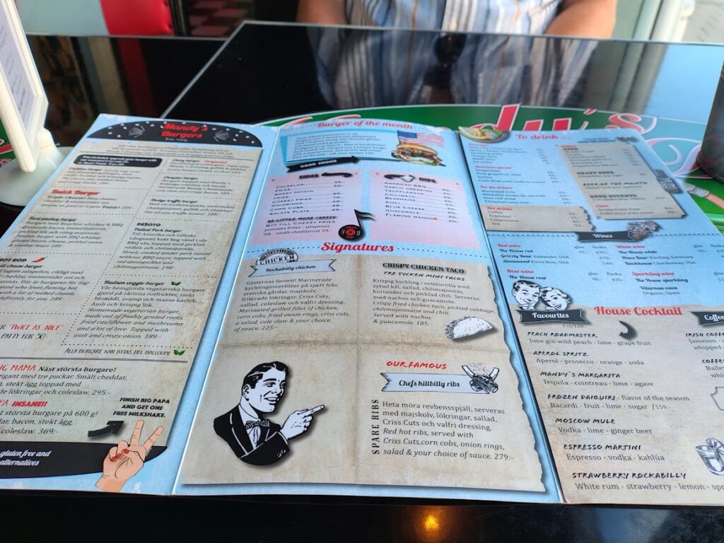 After painting and a few dips in the way-too-warm pool, we headed to Mandys Diner for dinner. It’s usually a highlight. A place where the food and the vintage décor create a sort of time-travel back to the 1950s and 60s. I’ve always loved the atmosphere – the pictures, the details, the vibe. It feels like an experience.