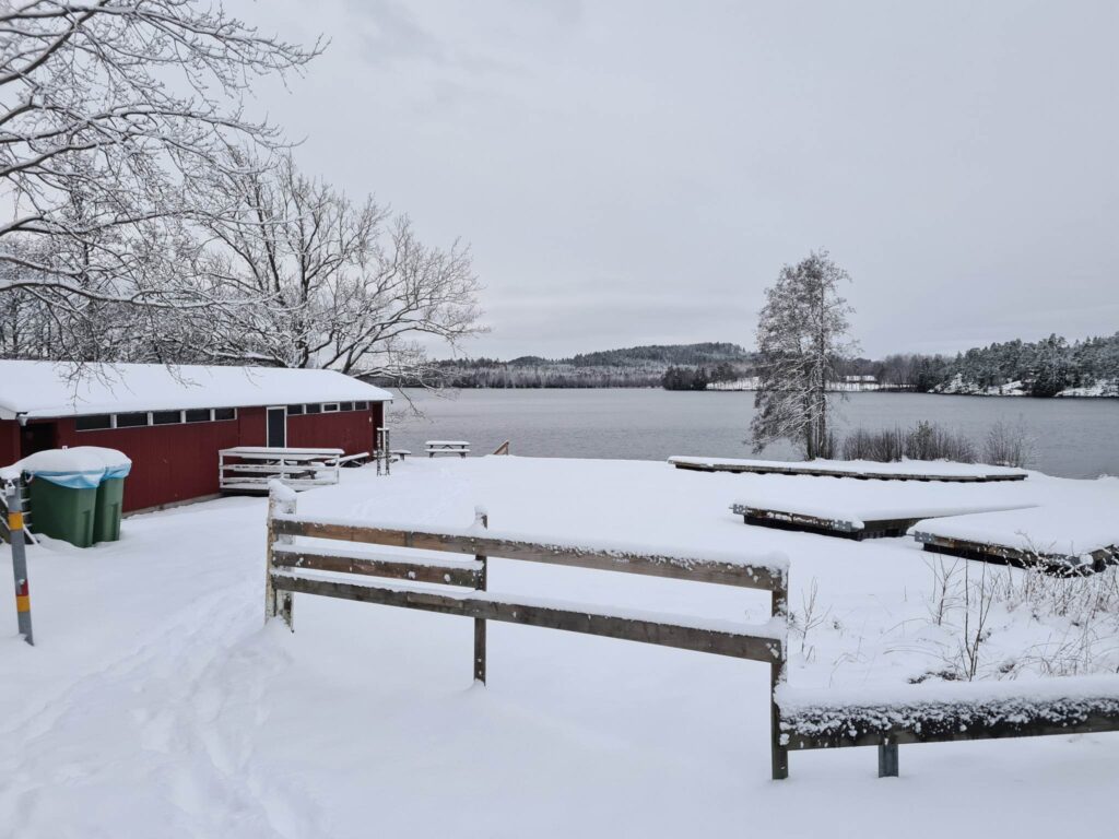 7,1 grader var det i vattnet idag. -2 grader på land. Vinterlandskap ala magiskt vackert var det. Det blev kallt att gå ner till sjön, snön nådde till nedre delen av mina ben och var kylig, innan jag ens gått i vattnet. En av mina badsystrar hade varit klok nog att ta med sig en skyffel, för att skotta av trappan. Hon är så klok och har alltid ett förutseende. Hon tänker alltid på sådant där som andra glömmer. 3 minuter och 25 sekunder gick det att vara i vattnet. All värk försvann och har inte ännu återkommit. Kanske behöver jag bada flera gånger om dagen så kanske värken försvinner för alltid. Det är bara så svårt att bada flera gånger, när kroppen är så nerkyld.