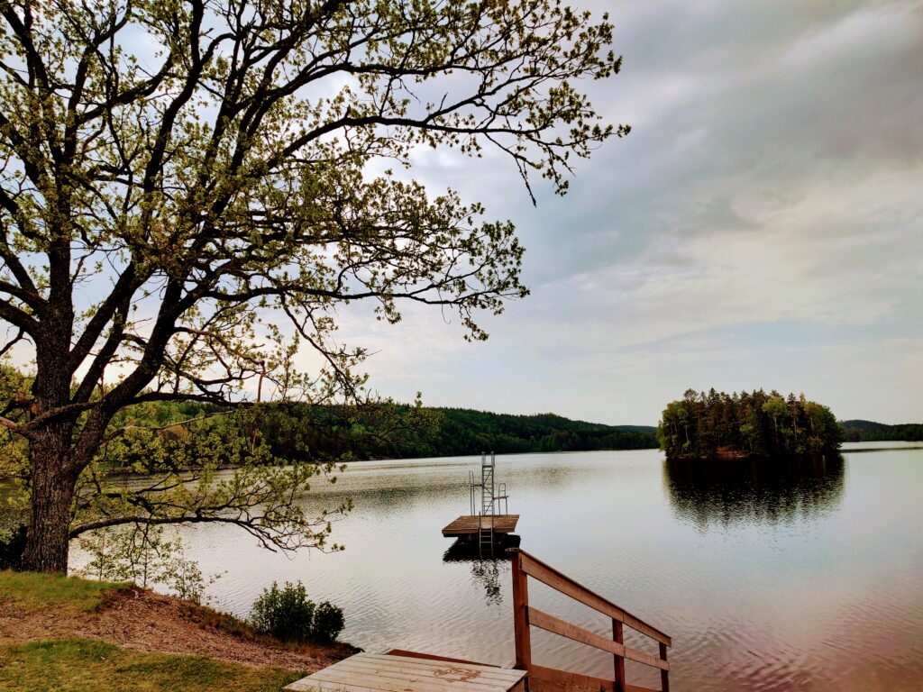 Badsystrar jo, idag verkligen gjorde jag det. 17.3 grader i vattnet och ett på härliga simtag blev till. Mina badsystrar fick jag idag äntligen träffa. Höra snattret tillsammans med simtagen och en härlig morgonrutin blev till. Sommaren är där vid sjön, mitt underbara träd har visat sig i sin skira gröna färg på bladen. Nu är vi där… Där i alla olika nyanser av grönt.