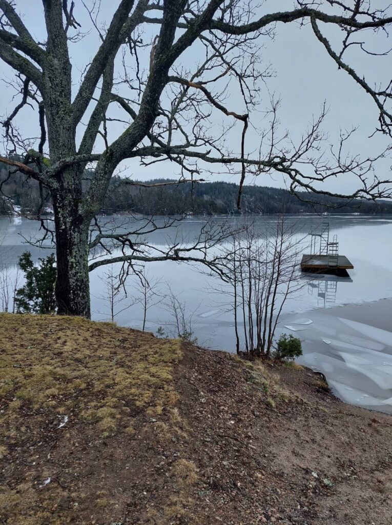 Där bodde det kärlek i mig. Att vattnet var kallt behöver jag kanske inte skriva. Isflaken vid vattenbrynet skyfflade jag och en annan badsyster, under den tjocka isen. Bad-vaken blev rätt stor. Har man väl börjat bryta is så är det svårt att sluta, fast händerna blir kalla. Finns det något flak så blir det att putta undan.