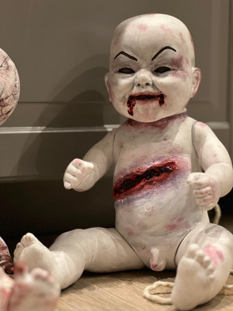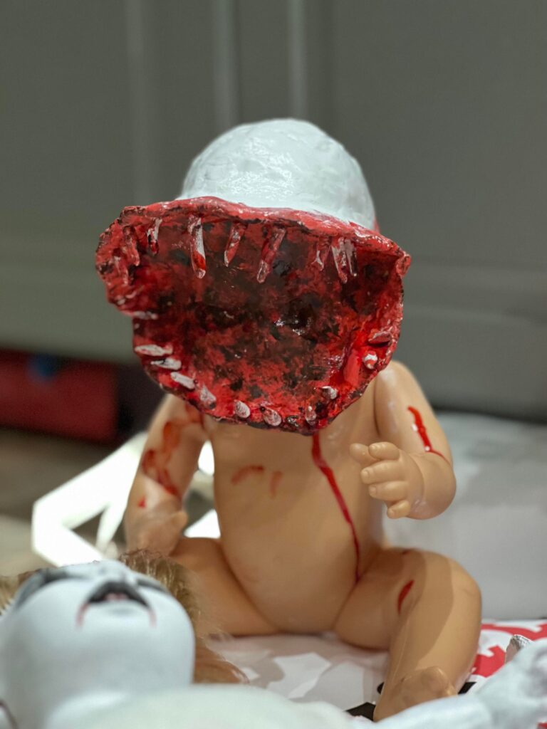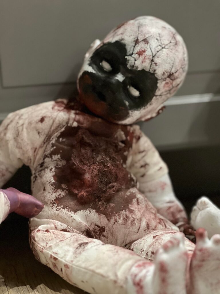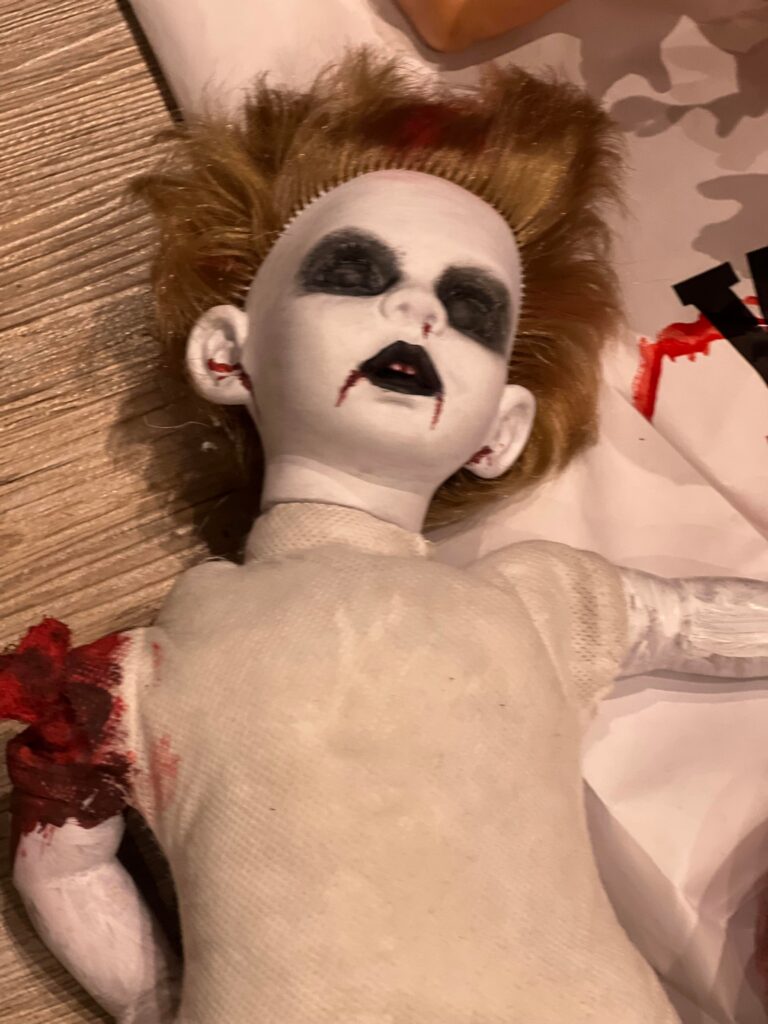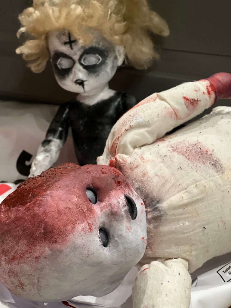 Idag kommer då Alfred hit och ska sova över. hans mamma ska pynta hemmet med skräck och dockor som hon jobbat med under denna månad. Fest ska dom ha dom där ungdomarna. Alfred ville dom inte ha hem fråns i morgon eftermiddag. Jag tänker att det kommer vara festernas fest. En morgondag som jag inte skulle vilja vakna upp till. Men det är sådant dom måste inse själva. Men visst är dockorna grymma som dom gjort. Grymt vidriga hemska men ett grymt bra hantverk.