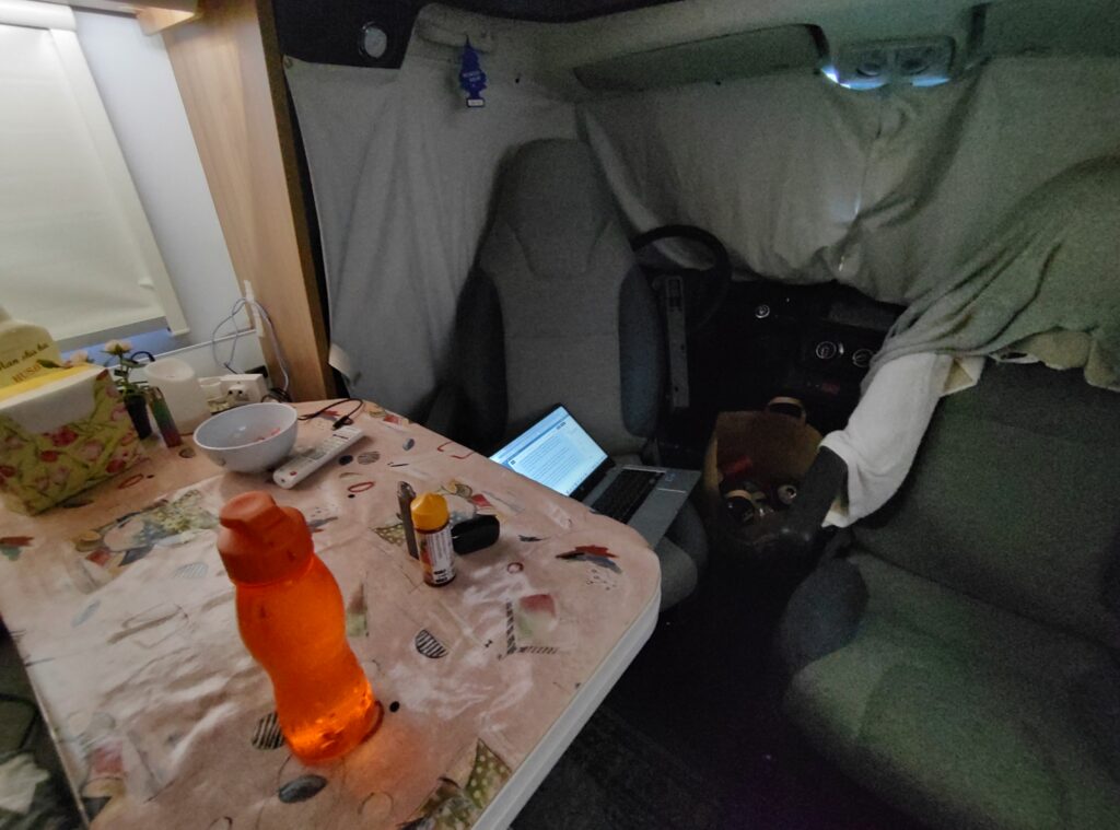 Nej andra koppen kaffe är upp hälld, andra koppen kaffe den där sista koppen att dricka. Efter det ska jag baka scones att bjuda maken på till frukost. Jag skulle inte vilja ha en husbil utan ugn. Förr innan vi hade ugn, hade vi en Omnia. Det var bra men det här med ugn i bilen det är så mycket bättre. Det här är livet på en pinne, så härligt att ha möjligheten att bo i vår lilla kära Lvl^2. Vilket är namnet på vår lilla bil. Level upp 2, Vår förra hette lvl^.